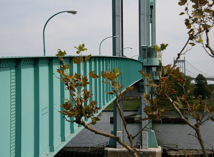 On February 19, 2008, I wrote Sin of Omission, about Ward's Island Bridge (although I had not yet crossed it). On this occasion, I crossed the bridge and visited the island - see my gallery of photos here. Crossing the foot bridge is a wonderful experience, owing to its very human scale and the complete lack of motor vehicles (open to pedestrians and bicycles only). Your first steps off the bridge bring you to Ward's Island Park, which wraps around the island along the waterfront. The day I arrived, families were picnicking and barbecuing. Walking the waterfront park affords vistas of Mill Rock Park, Manhattan, Queens, the Harlem and East Rivers, and the numerous aforementioned bridges.
